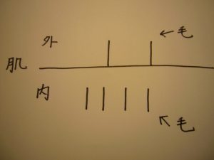 今、肌の表面に生えている毛の量は、毛全体の量の約1~2割程度、残りの約8割~9割の毛は肌の中に埋もれています。