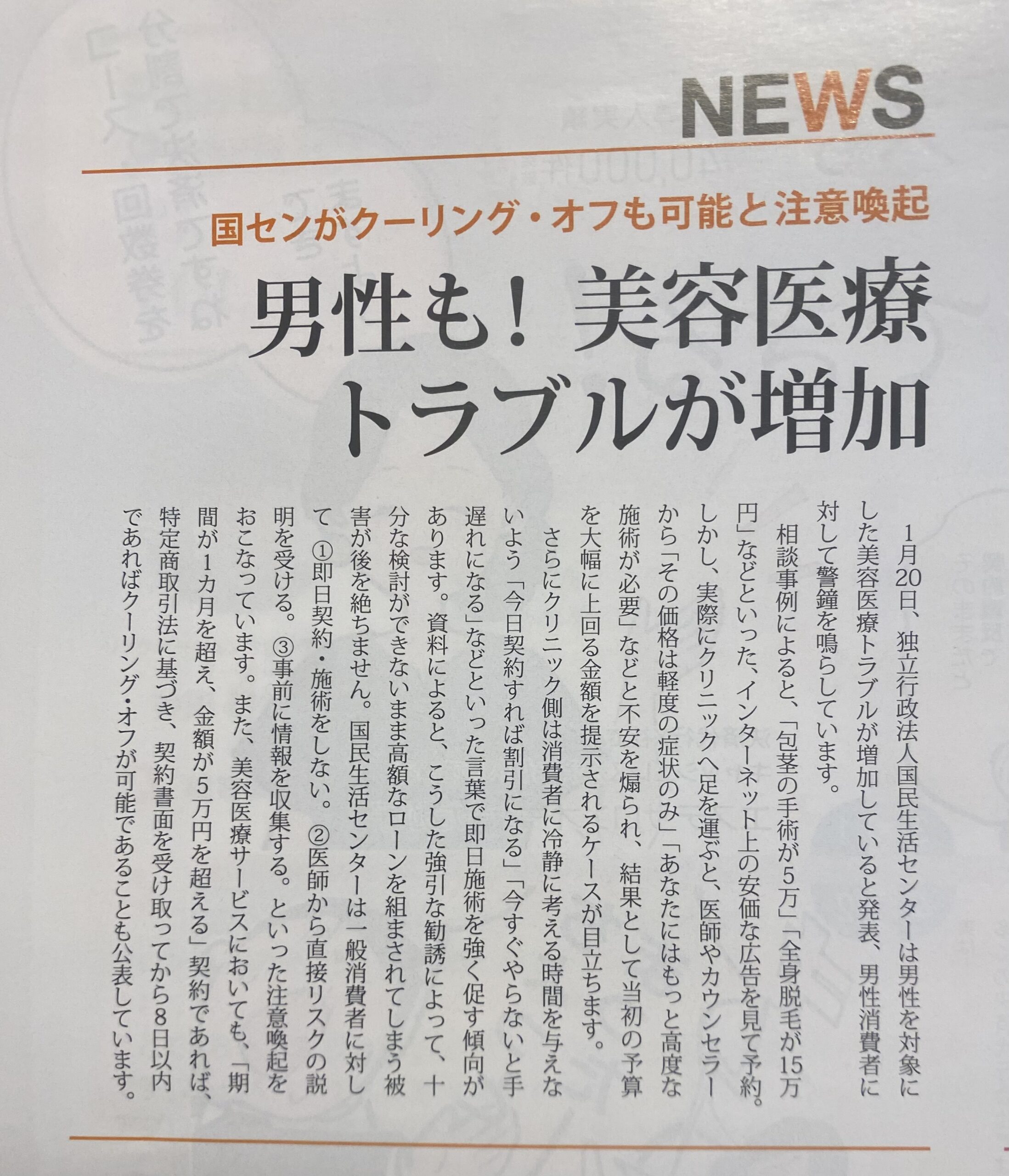 • 男性も美容医療トラブル増加!ご注意ください!