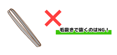 毛抜きでの自己処理は、施術前も後も絶対にしないでください。